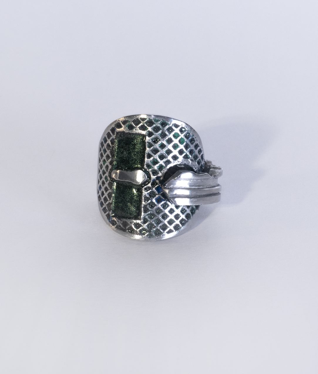 Georg Petermichl hatte schon vor Jahren die Idee, sich als Schmuckstück einen "Schlüsselring" zu machen. Er ist bislang der einzige Künstler, der mit einer Idee an die Kollaboration heran ging, anstatt ein bestimmtes Material auszuwählen. Er übergab der Schmuckkünstlerin seinen Atelierschlüssel, von dem ein 3D-Scan anfertigt wurde. Der Bart des Schlüssels wurde verlängert, damit die Form entstehen konnte, die Georg Petermichl sich gewünscht hat.