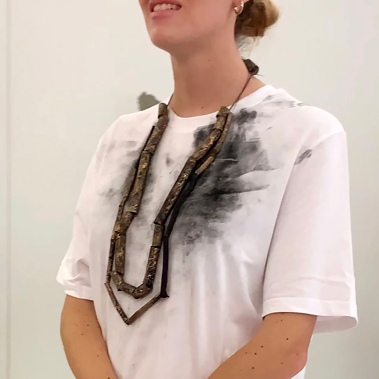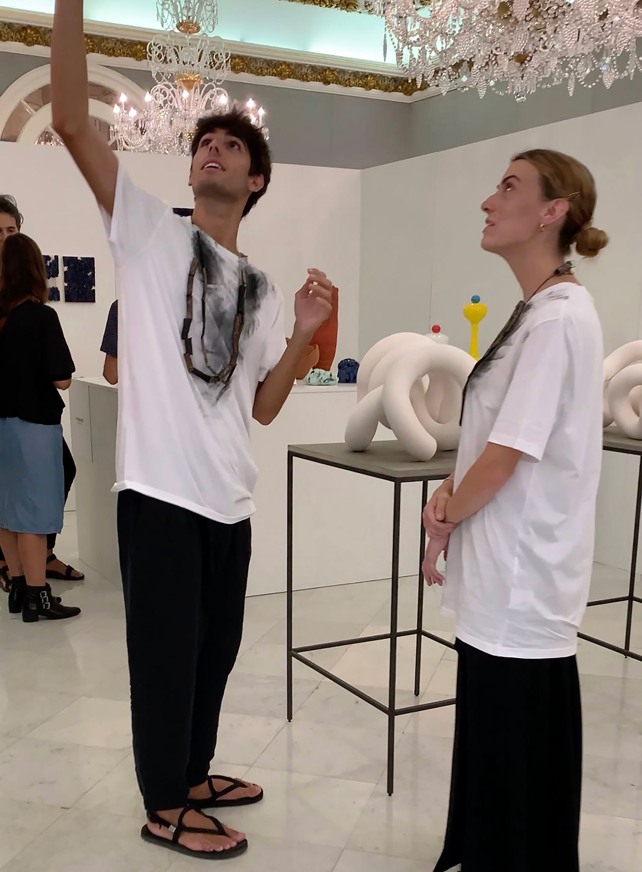 Ela Nord invited three architecture students from Barcelona to present selected conceptual pieces from her "Apocalypse" series at the exhibition. These unstabilized, charred objects made from burned tubing leave traces of ash on the worn textiles. This performative process highlights transience and the transformative power of destruction as an integral part of a renewing cycle.