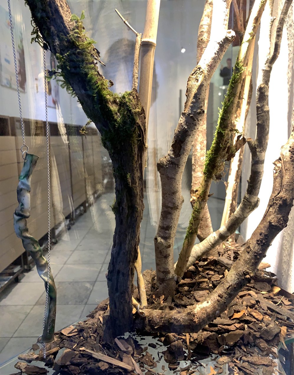 The "fake forest" pieces from the TUBES series (since 2020) shown in the V&V gallery recreate various woods such as bamboo, birch, ebony or milk orange tree. Creating a different material from an ordinary everyday material (even if this is only apparent) is understood by the artist as a positive process: by transforming something into a different state, results are created that remind us of the profound process of renewal and remodelling.