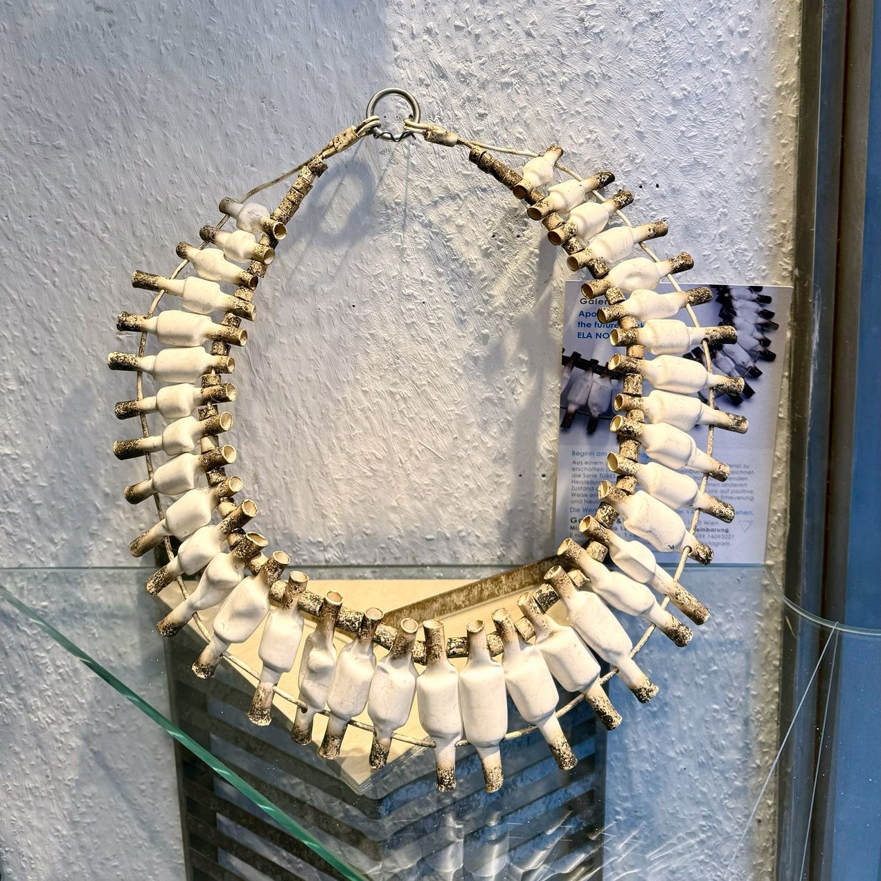 Das Spiel mit den Begriffen „echt/original/natürlich“ gegenüber „fake/reproduziert/künstlich“ spiegelt sich in den Trompe-l‘oeil ähnlich gestalteten Schmuckstücken, denen man das eigentliche Material nicht mehr auf den ersten Blick ansieht, wobei es weniger um eine Art „Zauberwerk“ geht, in dem die Technik eine Rolle spielt, sondern vielmehr um das Bewusstsein der Notwendigkeit eines Umdenkens hinsichtlich der Verwendung von natürlichen Materialien.