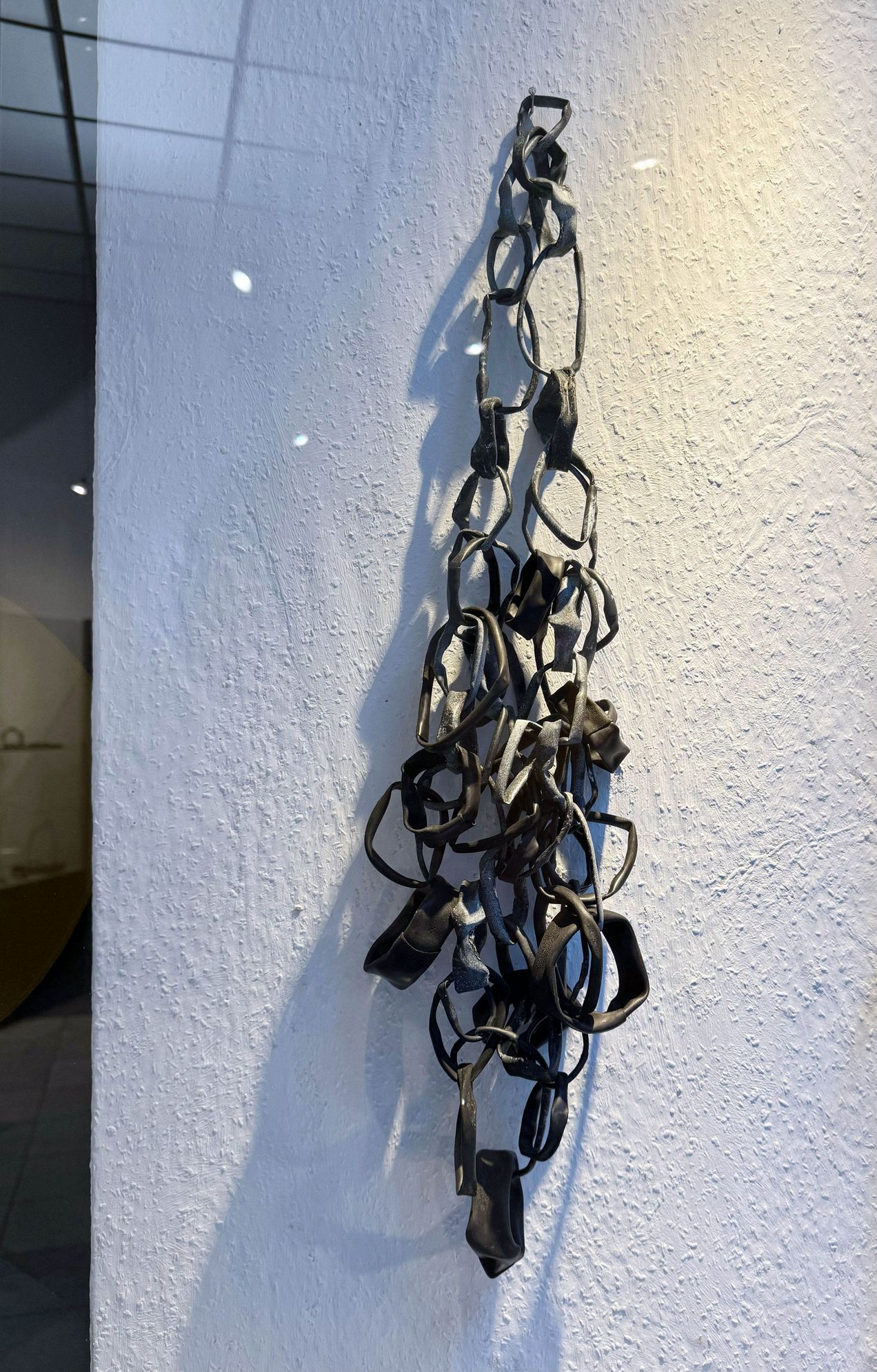Eine wörtliche Übersetzung von Apokalypse, nämlich „Ent-Hüllung“, spiegelt sich in den verwendeten Materialien wider, die nicht organisch sind. Es handelt sich um Kunststoffe, die einer weit stärkeren Hitze ausgesetzt werden als vorgesehen: schmelzen, zusammenziehen, verbrennen. Durch diesen Prozess entstehen neue Gefüge, Modelle und Oberflächen, die natürliche Rohstoffe abbilden wollen, wie Holz, Kohle oder Blätter.